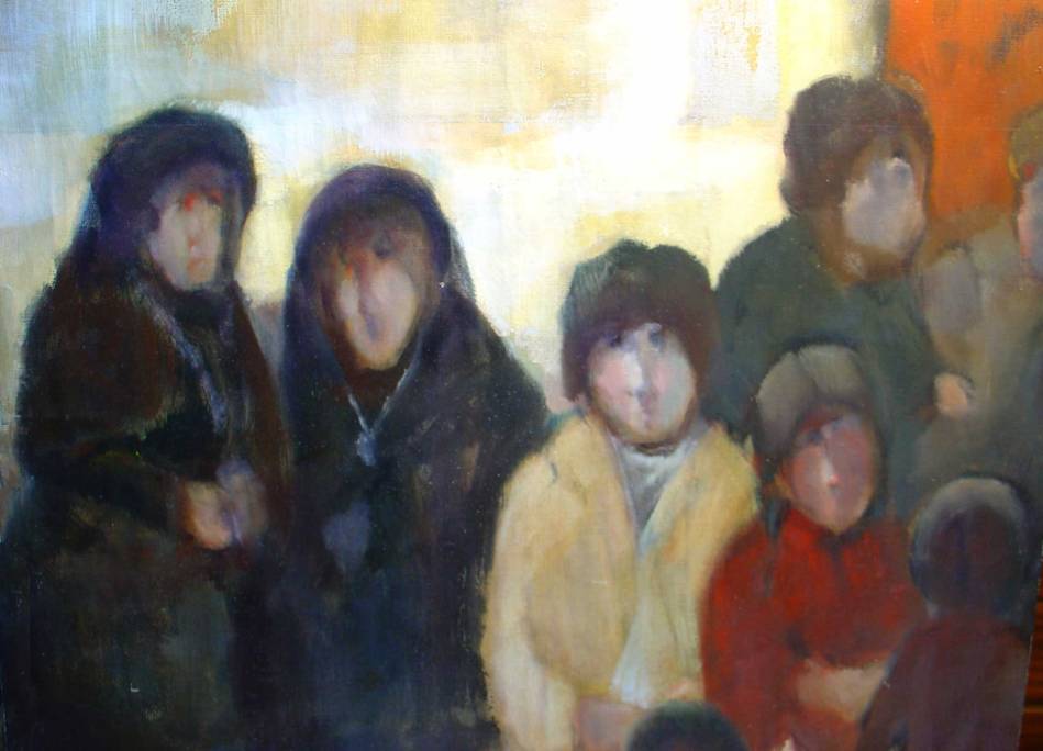 Salida de misa. Año 1973 Óleo sobre lienzo. Tamaño 51x62cm