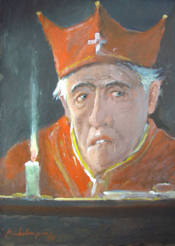 Inquisidor . Año 2011 Acrílico sobre tablex. Tamaño 25×24 cm