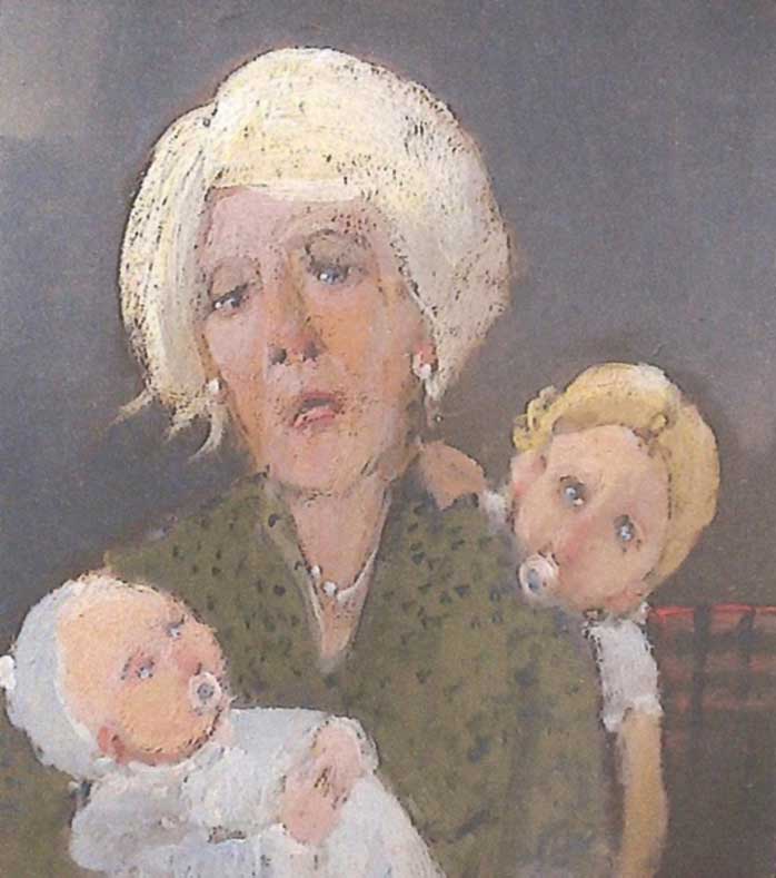 Abuela y nietos. Tamaño 18x18cm Acrílico sobre tablex.