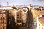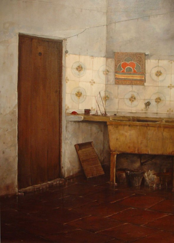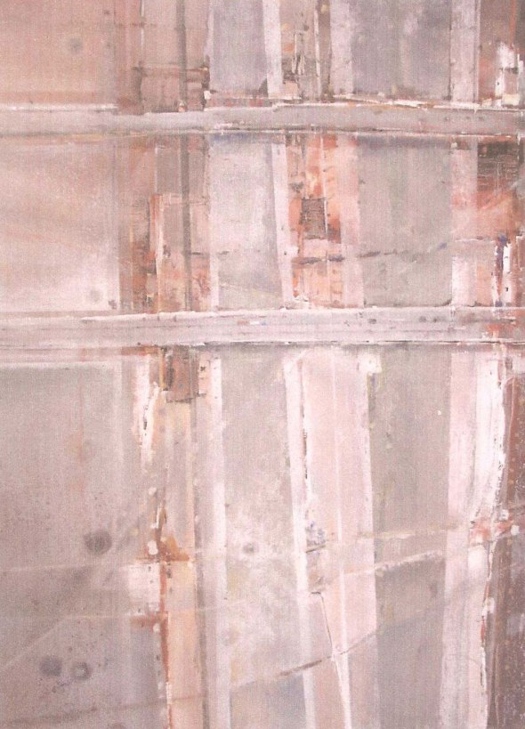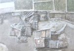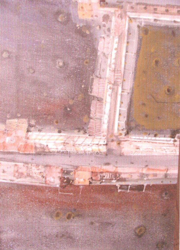 Mirbelenguer profundiza con un lote de obras en las que desarrolla su maestría pictórica desde otro punto de vista muy singular, desde las alturas, como si de viera los paisajes a  vista de pájaro.  Otra manera de delinear el paisaje urbano que le circunda en una paleta cromática de ocres, tierras y grises.